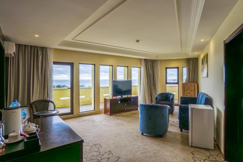 Nằm ở Freetown, cách Bãi biển Lumbley Beach 13 phút đi bộ, Bintumani có sẵn chỗ nghỉ có hồ bơi ngoài trời ngoài trời, chỗ đậu xe riêng miễn phí, trung tâm thể dục và khu vườn. Ngoài dịch vụ suite, chỗ nghỉ này còn có sân hiên. Du khách có thể thưởng thức các món châu Phi và Mỹ tại điểm ăn uống hoặc thưởng thức ly cocktail tại quầy bar. Chỗ Ở sẽ sẵn sàng cho khách các căn phòng được đi kèm với điều hòa có bàn làm việc, ấm đun nước, tủ lạnh, két an toàn, TV màn hình phẳng, ban công và căn phòng tắm riêng với vòi sen. Các căn có tủ quần áo. Chỗ nghỉ có phục vụ buffet sáng thực đơn buffet, thực đơn à la carte hoặc kiểu lục địa. Đội ngũ nhân sự lễ tân 24/24 giao tiếp thành thạo bằng tiếng Anh và tiếng Hoa. Bintumani cách Bảo tàng Sierra Leone National Museum 7.4 km và Western Area Forest Reserve 25 km. Chỗ nghỉ cách Sân bay quốc tế Lungi 34 km và đề xuất dịch vụ đưa đón sân bay mất phí.